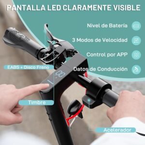 Der e roller verfügt über eine Scheibenbremse und ein regeneratives Antiblockiersystem EBS. Es kann Ihre Sicherheit gewährleisten. Der e scooter hat eine eingebaute Klingel. Hat sowohl Kopf- als auch Rücklichter, von denen letzteres schnell blinkt, wenn Sie auf die Bremse treten. Sicheres Fahren bei Nacht mit dem LED-Frontlicht und dem roten Rücklicht.