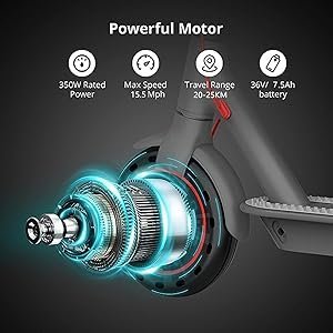 Der Elektroscooter 350W Brushless Motor 36V 7.5Ah Batterie mit hoher Energiedichte, klettert 15° bergauf und belastet max 120 kg, ideal für leichte Reisen, Pendeln, Verabredungen, auf dem Weg zur Schule oder Bibliothek.